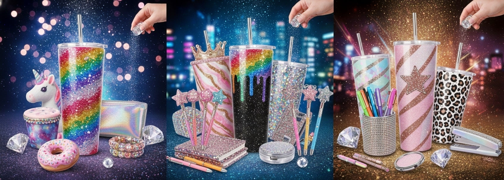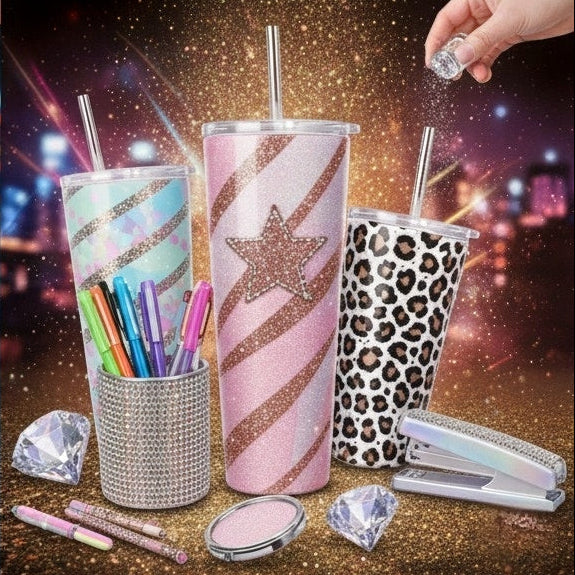 Cups, 3D figure pens, cup wraps, focal scoops, rhinestone cups, and straw toppers made to stand out.